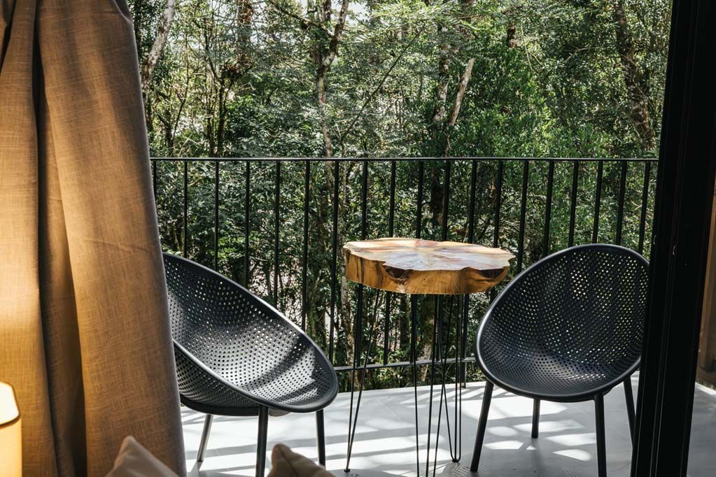 Discover your perfect retreat in cozy and intimate chalets, featuring a king-size bed, electric fireplace, balcony, and 55'' Smart TV, surrounded by araucaria trees. Relax in the hot tub overlooking nature and enjoy the Vinotage bath products.